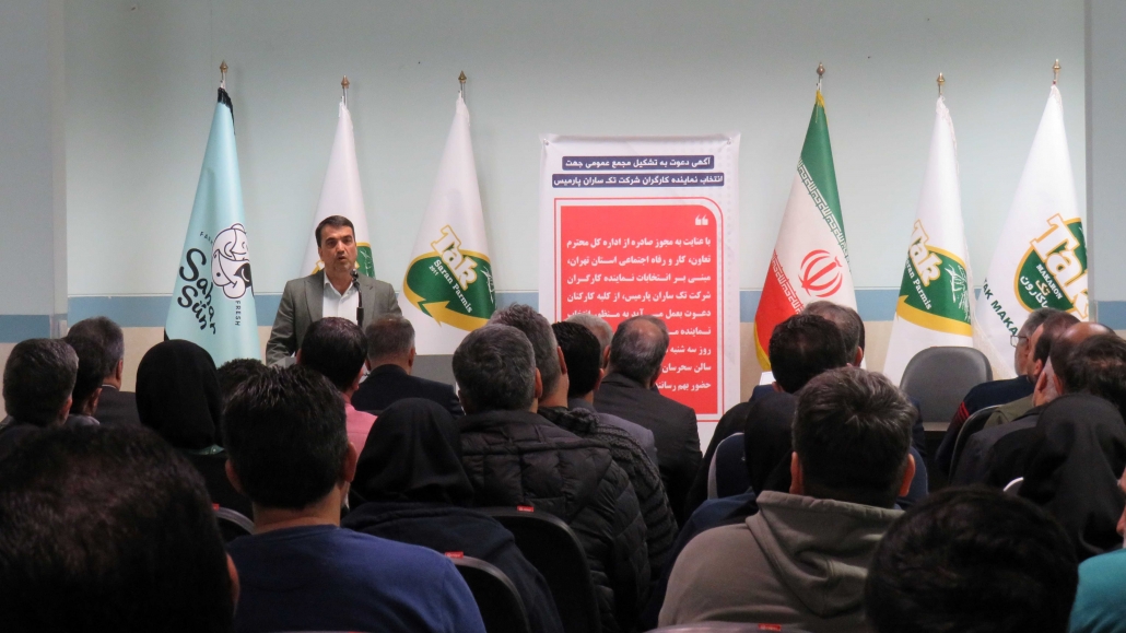 جلسه انتخابات نماینده کارگران شرکت تک ساران پارمیس در تاریخ بیست و هفتم آبان ماه سال جاری با حضور نماینده محترم اداره کل تعاون، کار و رفاه اجتماعی استان تهران، مدیر عامل محترم، مدیران و کارکنان ارجمند و مجری طرح در شرکت تک ساران پارمیس برگزار گردید.